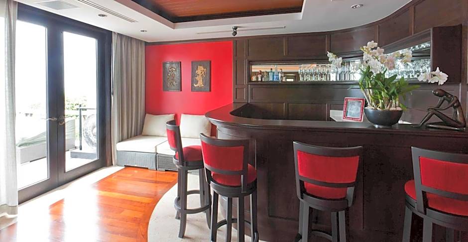 This oceanfront villa consists of of a 3-level unit and a garden walkways. It features a terrace with a swimming pool.